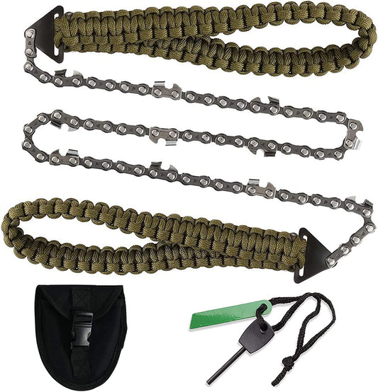 Pocket Chainsaw with Paracord Handle Emergency Outdoor Survival Gear Folding Hand Chain Saw with Carry Pouch Fire Starter for Camping, Hunting, Tree Cutting, Hiking, Backpacking (36 Inch 16 Teeth)
