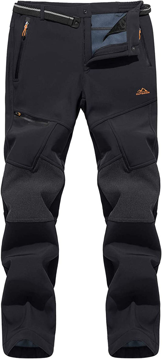 TACVASEN Men's Hiking Pants Thick Fleece Lined Skiing Pants Reinforced Knees Softshell Pants (No Belt)